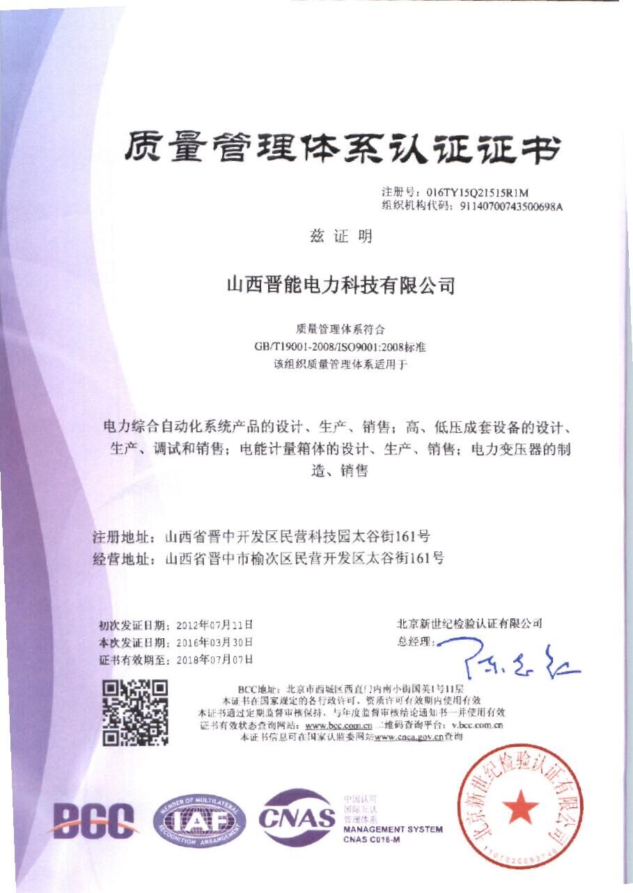 質(zhì)量管理體系認(rèn)證證書