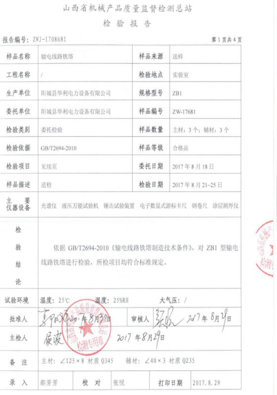 產(chǎn)品檢驗報告